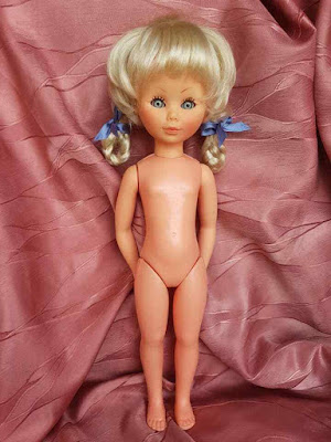 Aquí podéis ver cómo venía. Lo único que tuve que hacer fue pasarlo por spa, limpiando su cuerpo y, sobre todo, lavando su pelo, que venía bastante despeinado. Por lo demás, estaba bastante bien, aunque con signos del paso de los años, como la goma descolorida con respecto al plástico del tronco, además de uno de los ojos, que está atascado y no se cierra, pero que no me atreví a arreglar porque lo vi muy arriesgado. Digamos que tiene "marcas de guerra", que demuestran que fue jugado, pero también querido.
