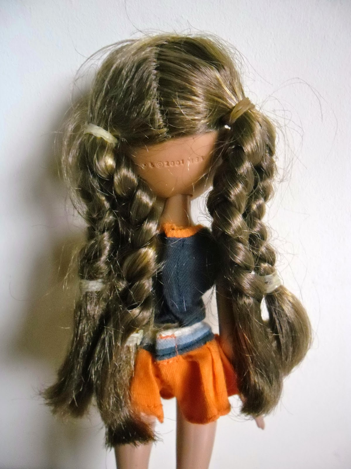 Su pelo tiene unas preciosas trenzas,de cada lado salen dos y son perfectas.El problema es que todas las gomas de plástico de mis muñecas,se están rompiendo,¡y no puedo permitir qué se deshagan esas trenzas tan maravillosas!