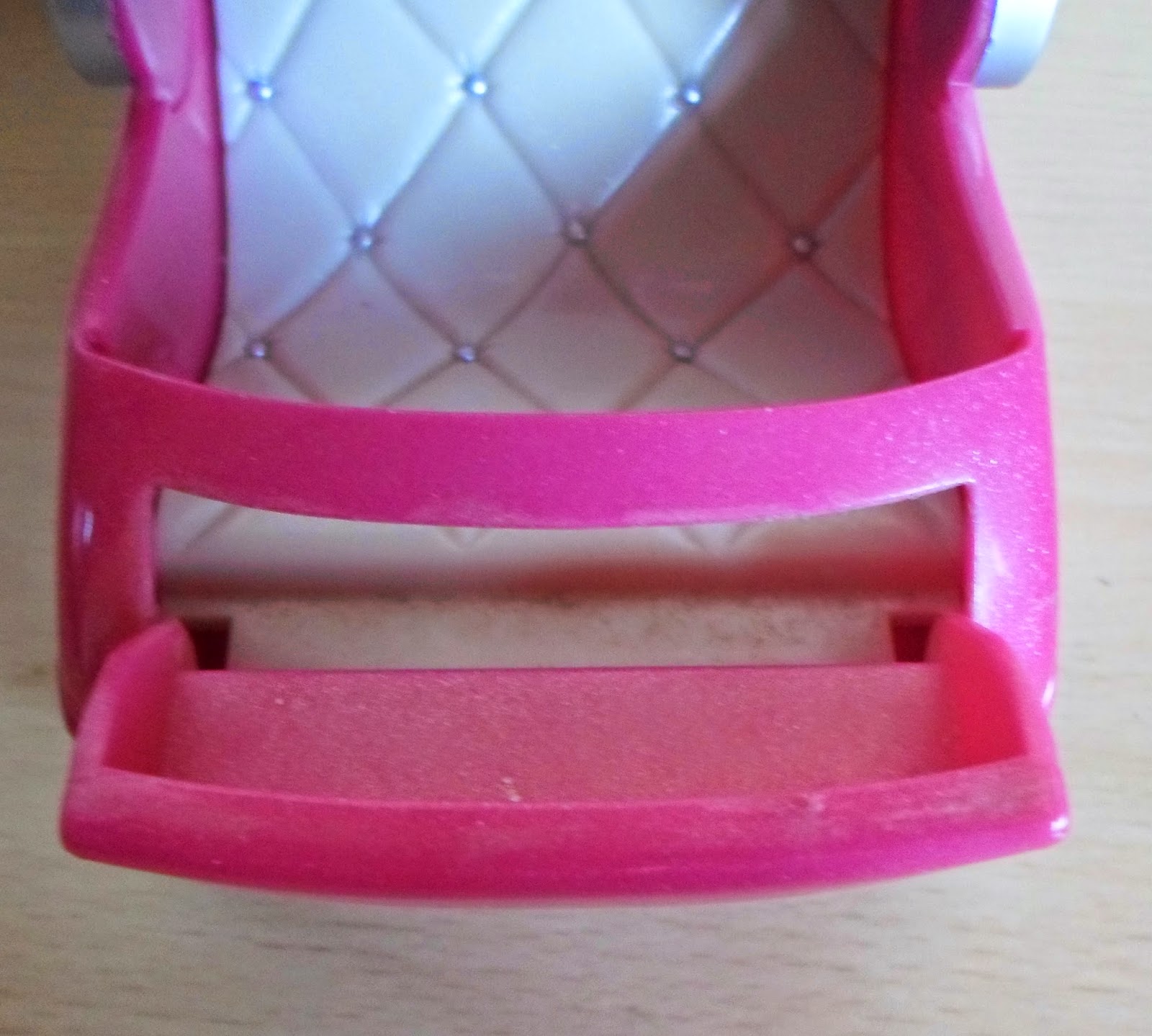La zona para sentarse es "acolchada" y tiene un cajoncito para poner el biberón o que la muñeca saque los pies.
