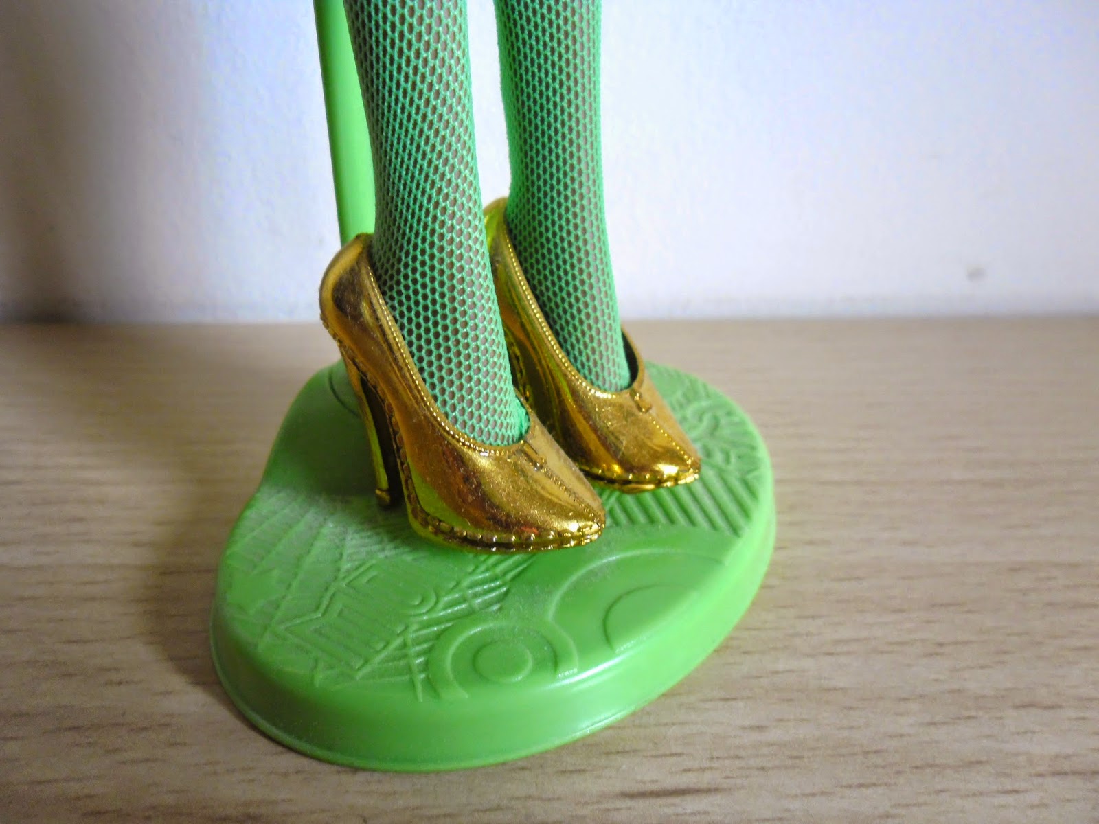 El maquillaje es muy llamativo(como es normal en este personaje):labios morados,sombra de ojos verde y amarilla por encima de esta...Si os habéis fijado tiene un ojos más grande que otro,puede que sea un error de fábrica,pero no me molesta como me molestaría con Barbie o otra muñeca,es más,me gusta,porque,si son monstruos,¿por qué no pueden tener facciones monstruosas?(además de que las personas tenemos un ojo más grande que otro,un pie más grande que otro...).