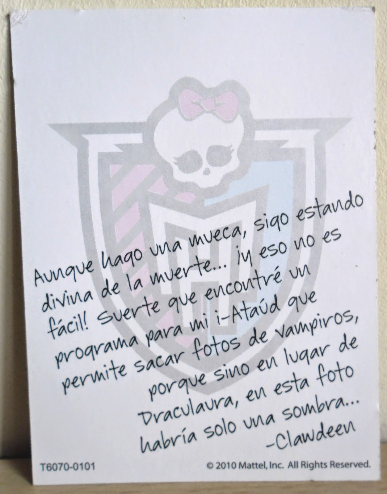 1. Hola Marina!Monster High es una linea de muñecas que tiene mucha mercancia y poco a poco va teniendo más y más fama,tu Clawdeen es preciosa pero su ojo izquierdo es raro *...* Mi favorita de esta colección es Ghoulia pero no tengo ninguna muñeca de esta colección...Un abrazo!!!