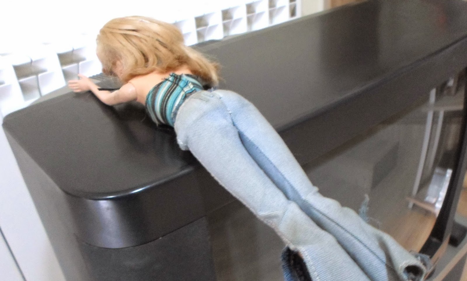 A Barbie se le presenta un asunto un tanto peliagudo:quiere decorar la "anciana" televisión de 20 años(que va de maravilla,la verdad sea dicha),pero antes necesita subir el mueble...