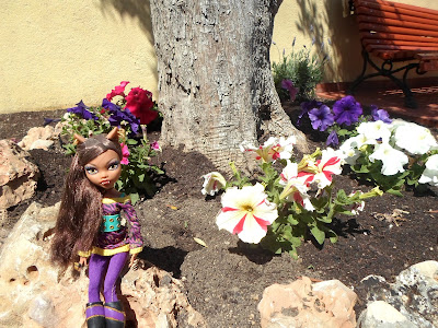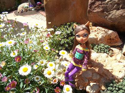 Clawdeen (que también es la primera vez que sale a hacerse fotos), disfruta del hermoso entorno que la rodea, lleno de flores y color.