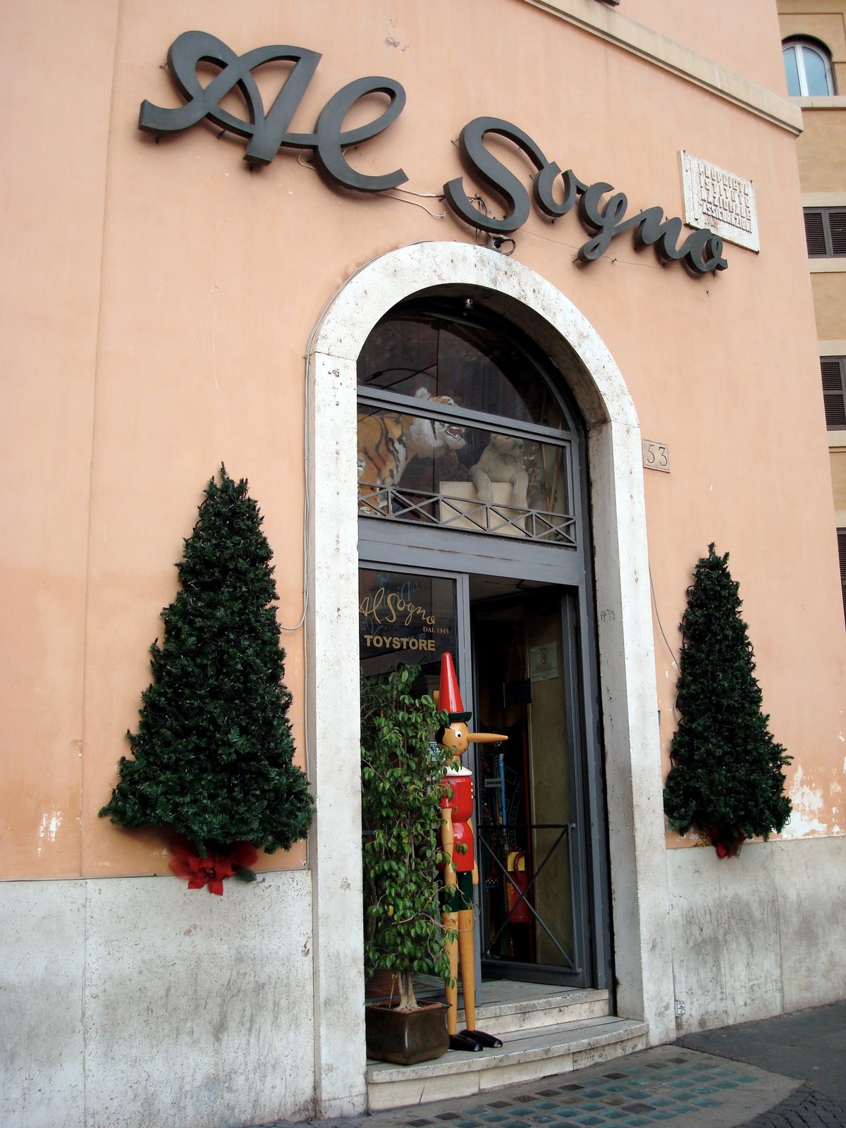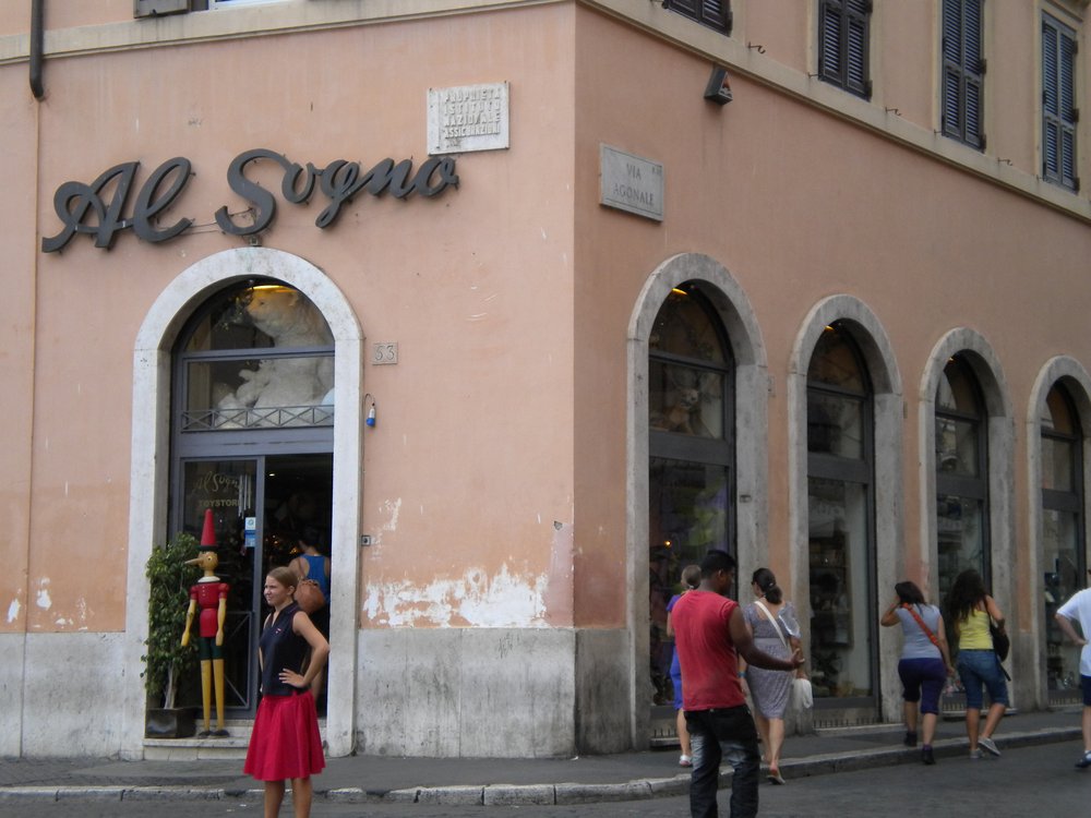 Justo cuando llegamos a la Piazza Navona, teníamos al lado, en una esquina una maravillosa tienda que me llamó la atención desde el principio, se veía que era de juguetes ya desde la calle, pero no una cualquiera: una especial. A esas horas ya era de noche y la entrada estaba muy bien iluminada con luces, ya preparada de cara para la Navidad. Justo cuando íbamos a entrar, salió una pareja de españoles (había muchísimos en toda la ciudad) diciendo :"Es una pasada", y yo, como no, deseaba con todas mis fuerzas entrar, y me habría quedado allí más rato.