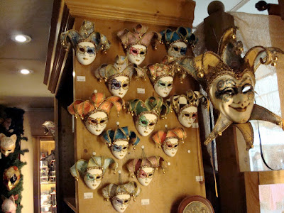 Nada más entrar veías preciosas vitrinas de figuras de hadas y ninfas (son mis perdiciones, como las figuras de bebés, angelitos... ¡De mayor no cabré en mi casa!) muchos juguetes de madera, maravillosas máscaras venecianas... También habían muchas vitrinas con hermosos muñecos y muñecas de temática fantástica, como si vivieran en un bosque mágico: