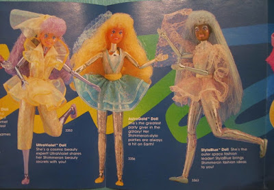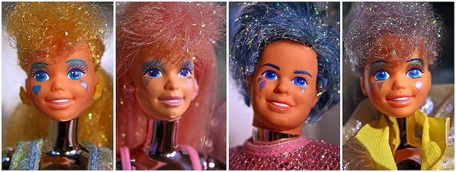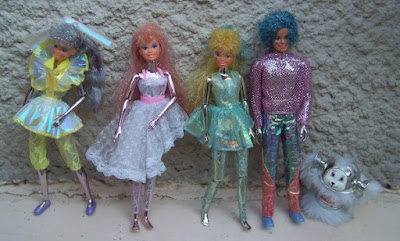 Las muñecas tienen una cara similar a la de Barbie por aquellos años, y su cuerpo está totalmente pintado en un único color metálico. Además, poseen varios puntos articulados, y pueden mantenerse en pie. Su pelo es de colores llamativos y también se compone por mechones brillantes.