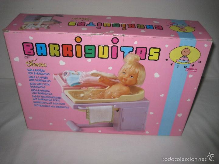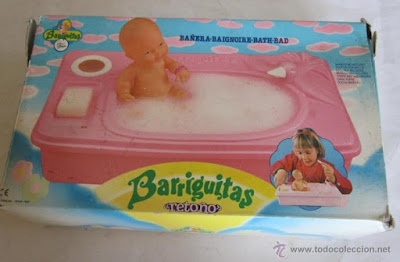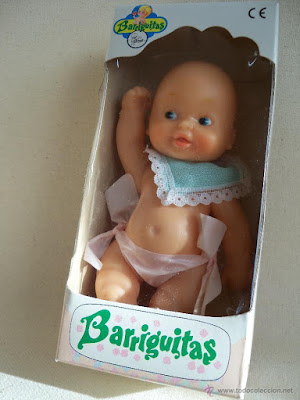 Barriguitas son unos pequeños muñecos que inicialmente eran bebés y medían 14 centímetros. Fueron creados por Famosa y lanzados al mercado en el año 1969. Como he dicho representan a unos pequeños bebés a los que desde el principio se le realizaron todo tipo de accesorios, de gran calidad y que daban mucho juego, por ello, en su publicidad se dice que es una muñeco que tiene más cosas que las muñecas grandes, y es cierto, porque que las muñecas grandes tengan accesorios es algo complicado por el espacio y el precio...
