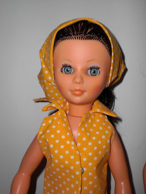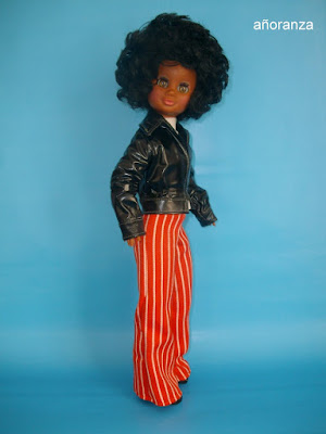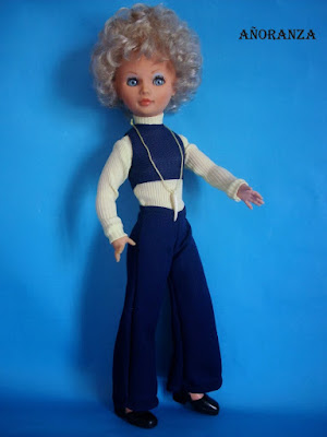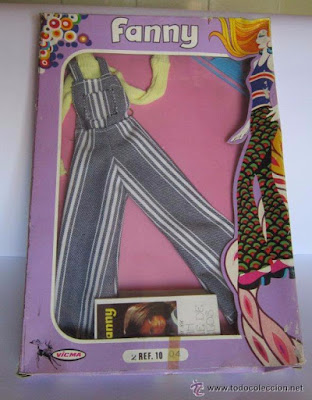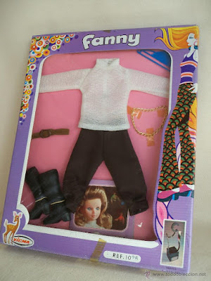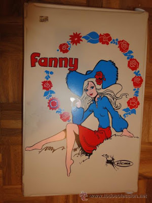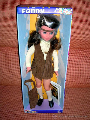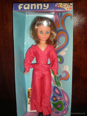Fanny fue creada en el año 1974 por la empresa de muñecas española Vicma. Su rostro está ligeramente basado en el de la muñeca italiana Corinne de Italocremona, al igual que Lissi (otra muñeca maniquí española de la misma época que presenté hace varias entradas). Esta muñeca mide 48 centímetros, y posee puntos de articulación en cabeza, cintura, brazos y piernas. Su figura es mucho más esbelta que la de la mayoría de muñecas maniquí españolas de la época.