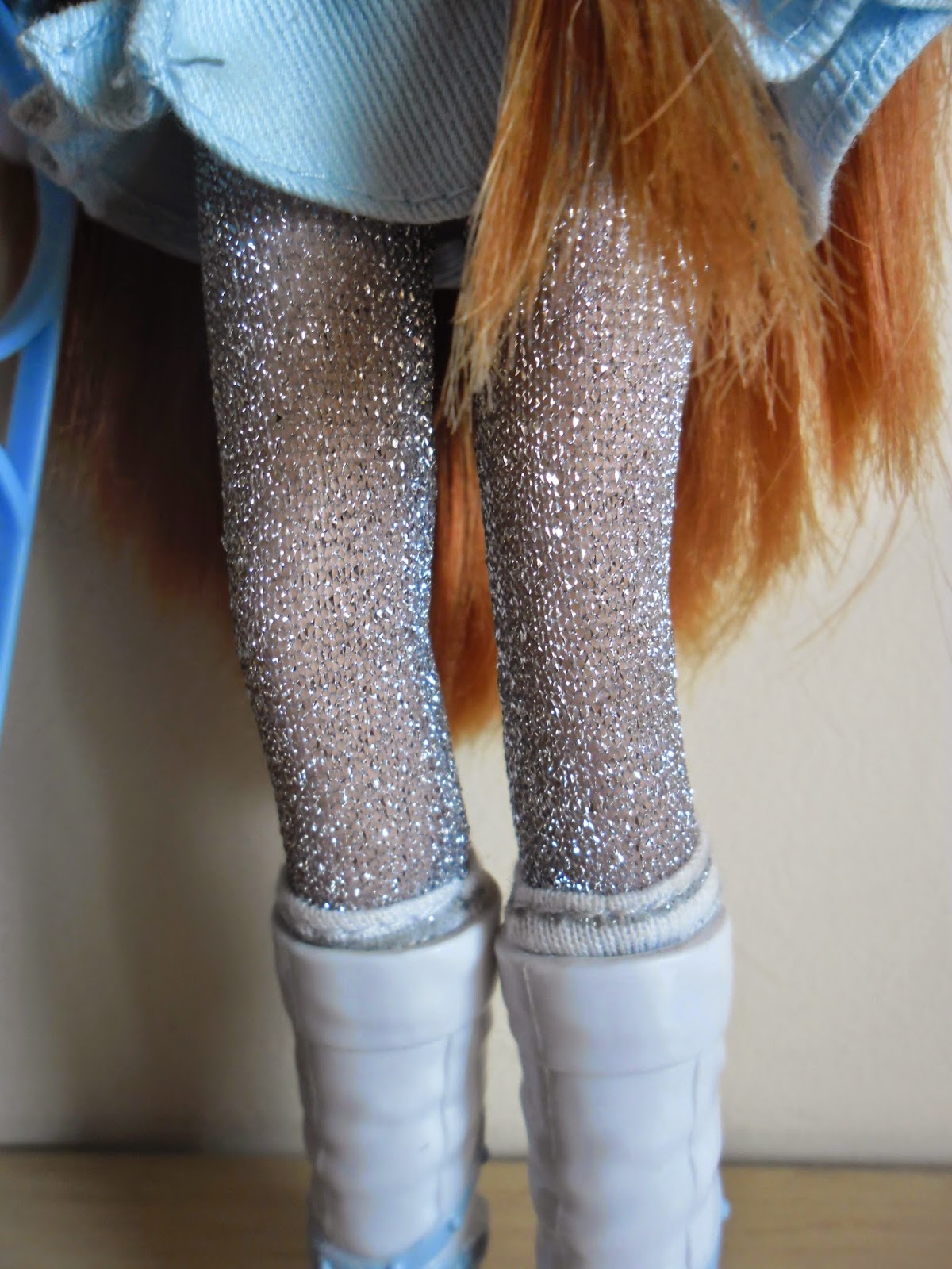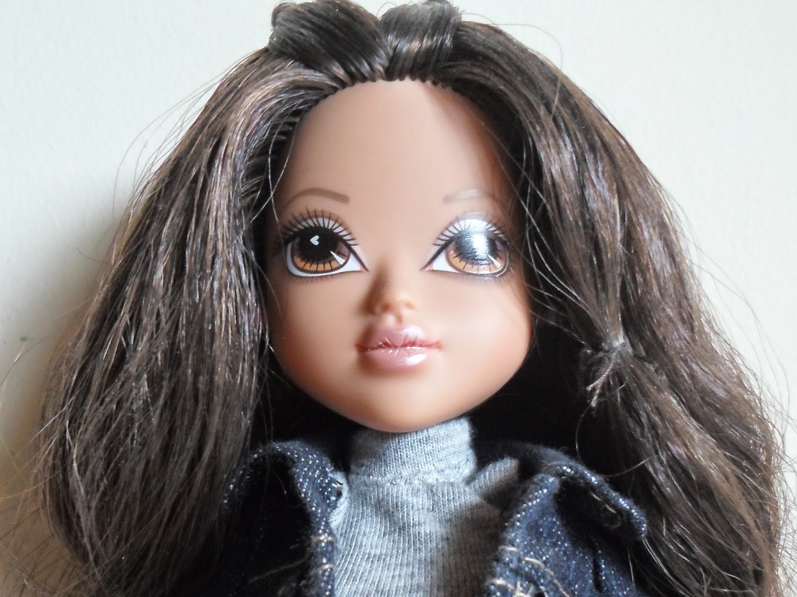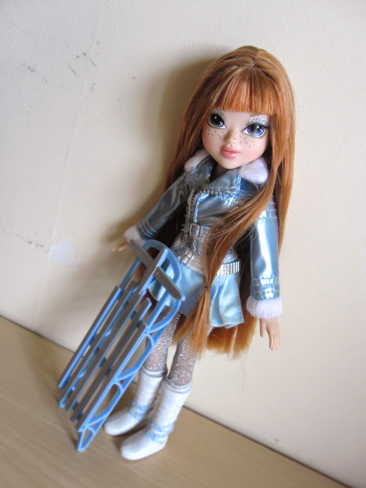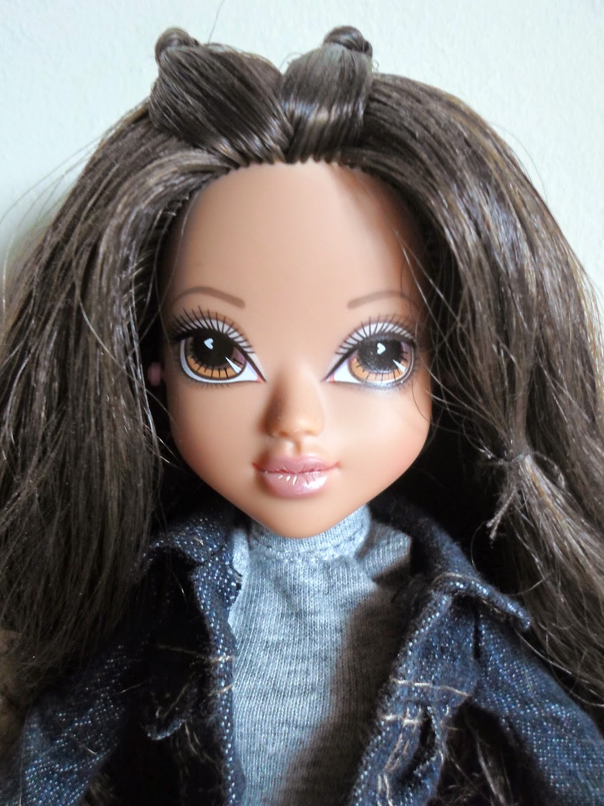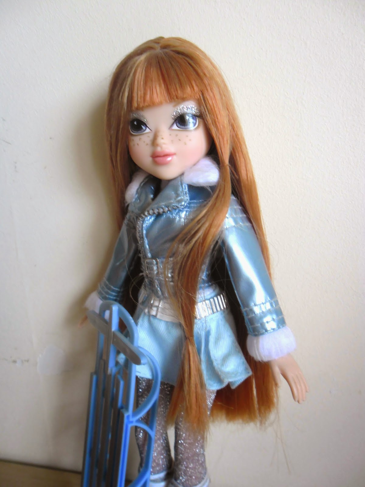 Sus labios no van pintados(como en todas los modelos de Moxie Girlz),y sus preciosos ojos con destello en forma de corazón tienen una sombra de ojos plateada con purpurina.Kellan es mi personaje favorito de toda la línea(a parte de Bria),por su color de pelo y esas pecas tan adorables.