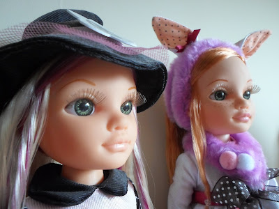 Y aquí está con mi otra Nancy moderna. Se ve más bajita la bruja porque no lleva zapatos de tacón como la arcoíris. Es curioso, la mayoría de modelos de Nancy tienen los ojos azules, pero todas las que yo tengo los tienen verdes.