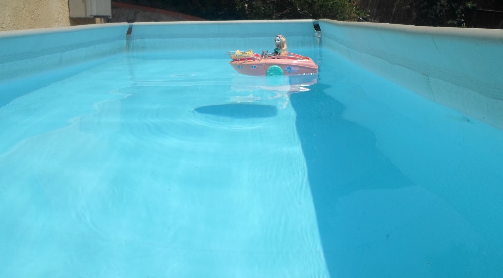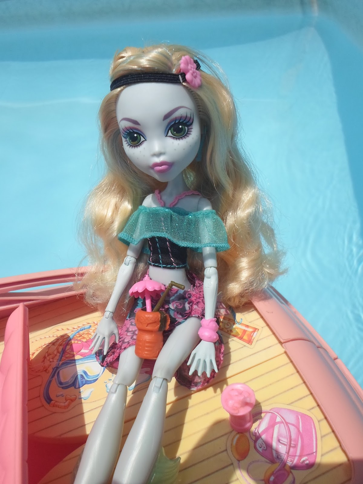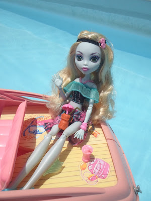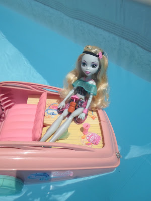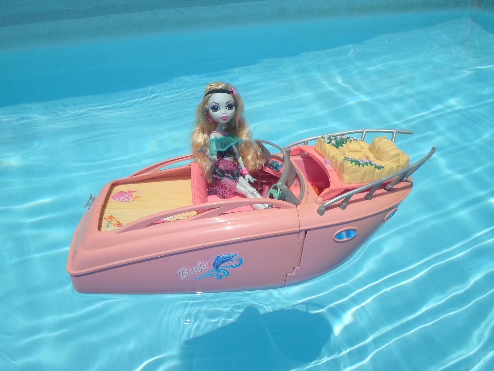 Lagoona decide subir a la ya veterana lancha de su amiga Barbie para dar un paseo por la piscina (aunque para mí es una cazuela, de lo que quema el agua), así que esta sesión de fotos de podría llamar: "Lagoona y el caldero mágico", como la película de Disney "Tarón y el caldero mágico" (supongo que ya habréis entendido el porqué de este nombre).