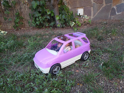 Hoy algunas de mis chicas se van de picnic en su ya veterano pero aún flamante coche familiar (según mi padre parecido a un Škoda) y las más pequeñas han sido las primeras en meterse en él y se ponen contentas a jugar con algunos juguetes para hacer más ameno el camino.