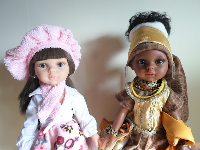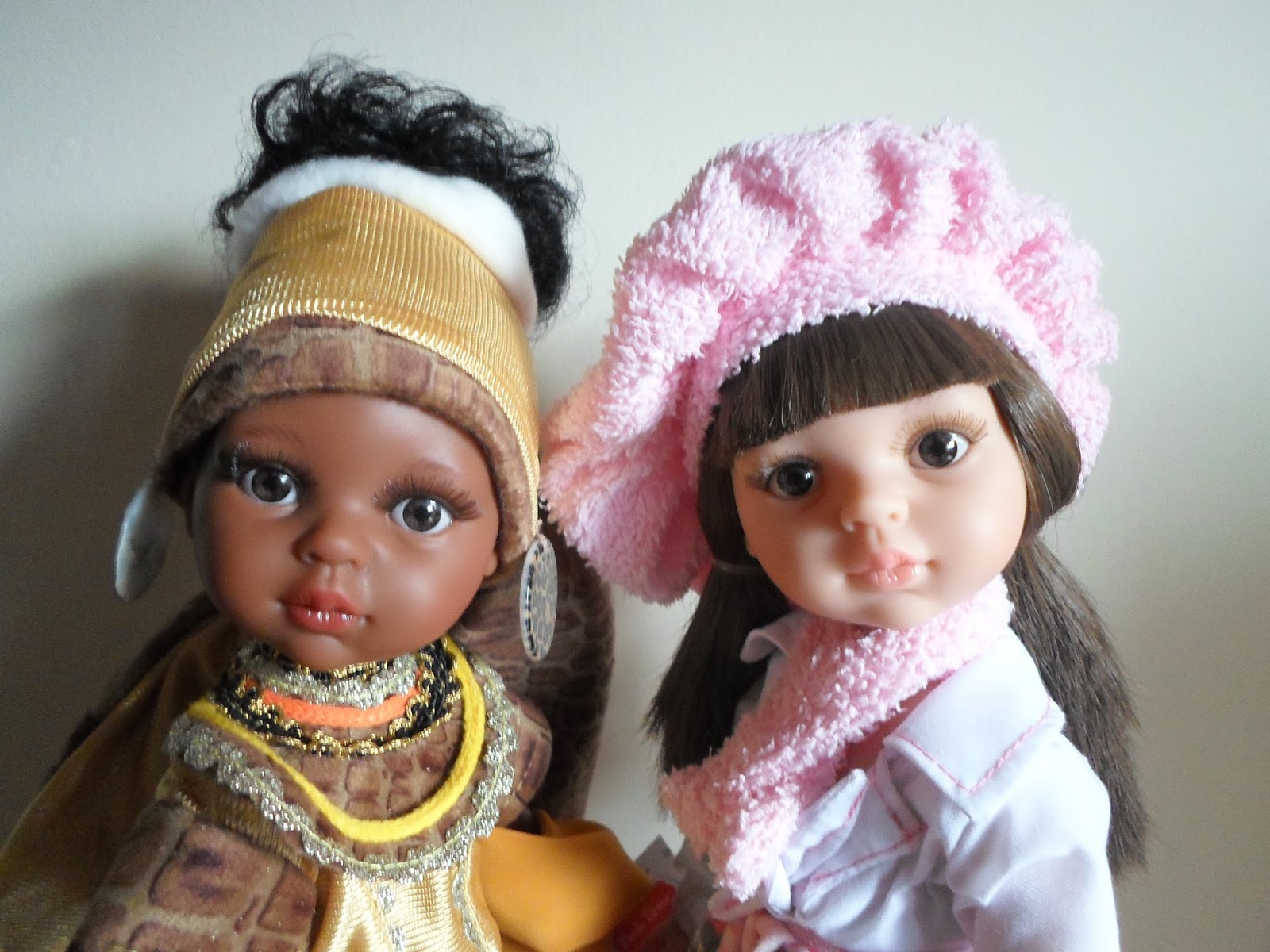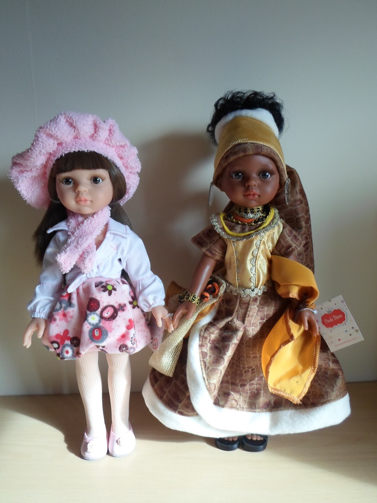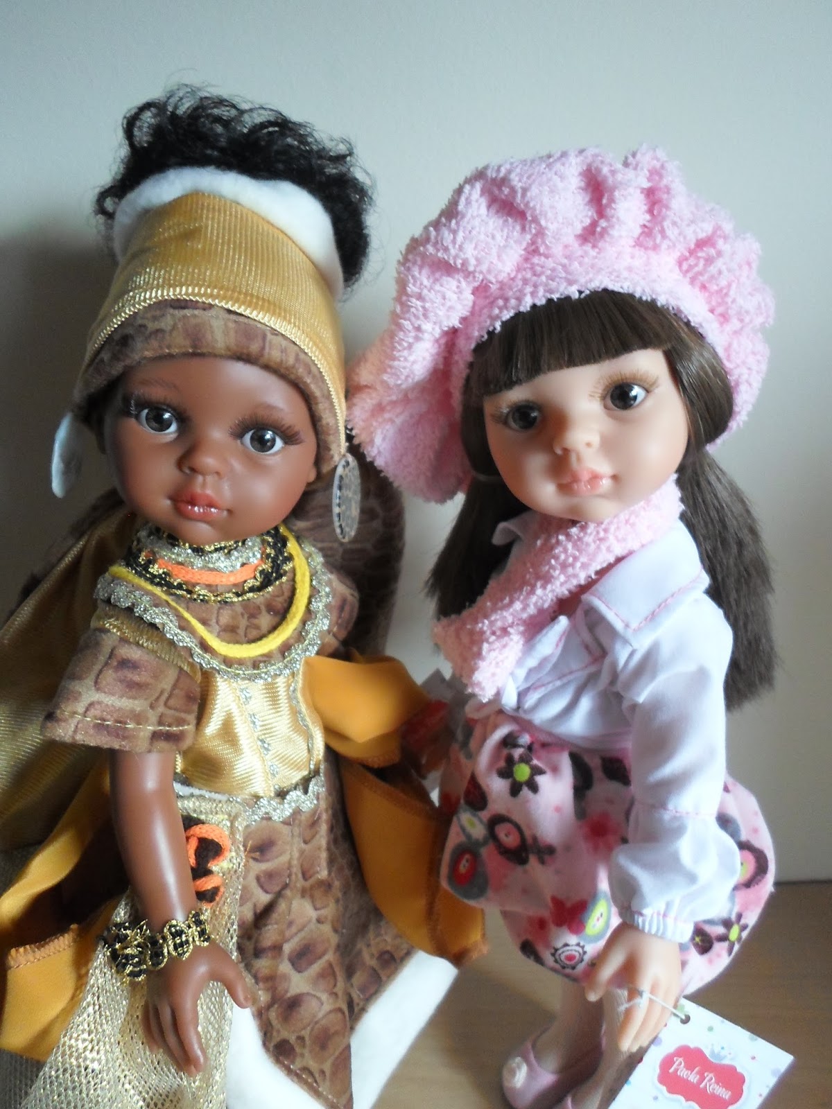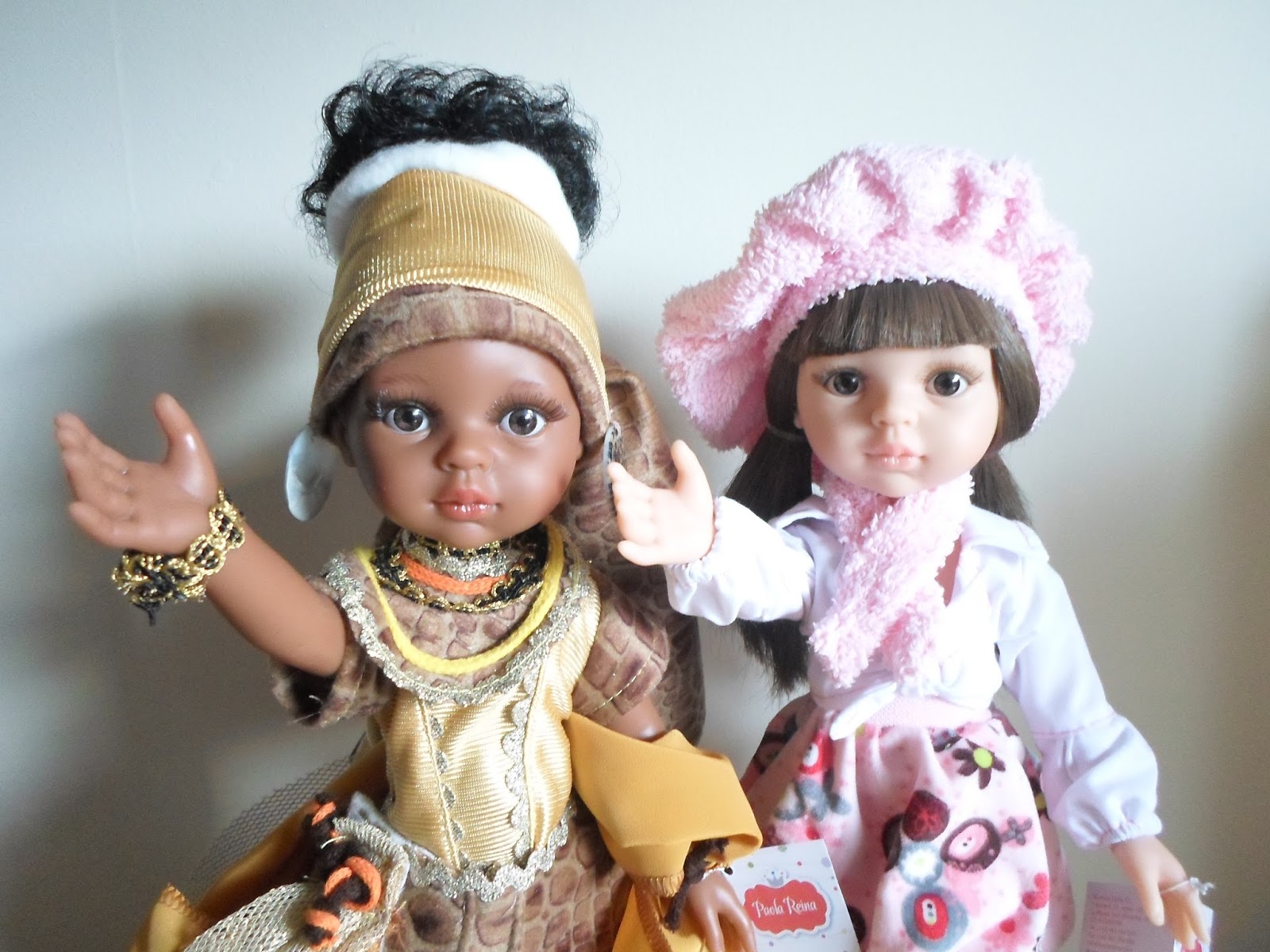Todo empezó a finales de verano, cuando fui a un centro comercial de Barcelona. Entré en la tienda Juguettos (que ya me tienen que conocer los dependientes porque pocas veces no he ido) y vi las muñecas Paola Reina, todas juntas en una estantería. Siempre habían estado ahí, pero nunca me había fijado en ellas. Me puse a mirarlas con más detenimiento y me di cuenta de que muñecas eran y pensé: "¡Creía que eran de la medida de Nancy!". Entonces vi a aquella preciosidad de muñeca que me impactó: una preciosa ¿reina, princesa? africana muy especial. Se la enseñé a mi padre y dijo: está muy bien la muñeca. Pero todo quedó ahí. Ya bien entrado el otoño volví allí y la seguí viendo junto a muchas otras de la misma marca (incluida la que me regaló Papa Noel) y entré las vi con mi prima, que en meses cumplirá 10 años. Y no os lo podréis creer, pero yo me quedé sola mirándolas y ella se fue a ver juguetes electrónicos (con deciros que casi todos sus regalos han sido videojuegos y su correspondiente consola, lo digo todo...). Fue entonces cuando llamé a mi madre y a la suya (mi tía, vamos), y se quedaron prendadas de ellas. Yo indirectamente le dije después que quería esa preciosa negrita y elegí a la otra que me gustaba más, Carol vestida para el invierno.Pasó el tiempo y se acercaba la Navidad. Preocupada por no encontrarlas, las vi allí y me llevé un alivio impresionante. Así que ahora están las dos conmigo, ¡y no puedo estar más contenta!