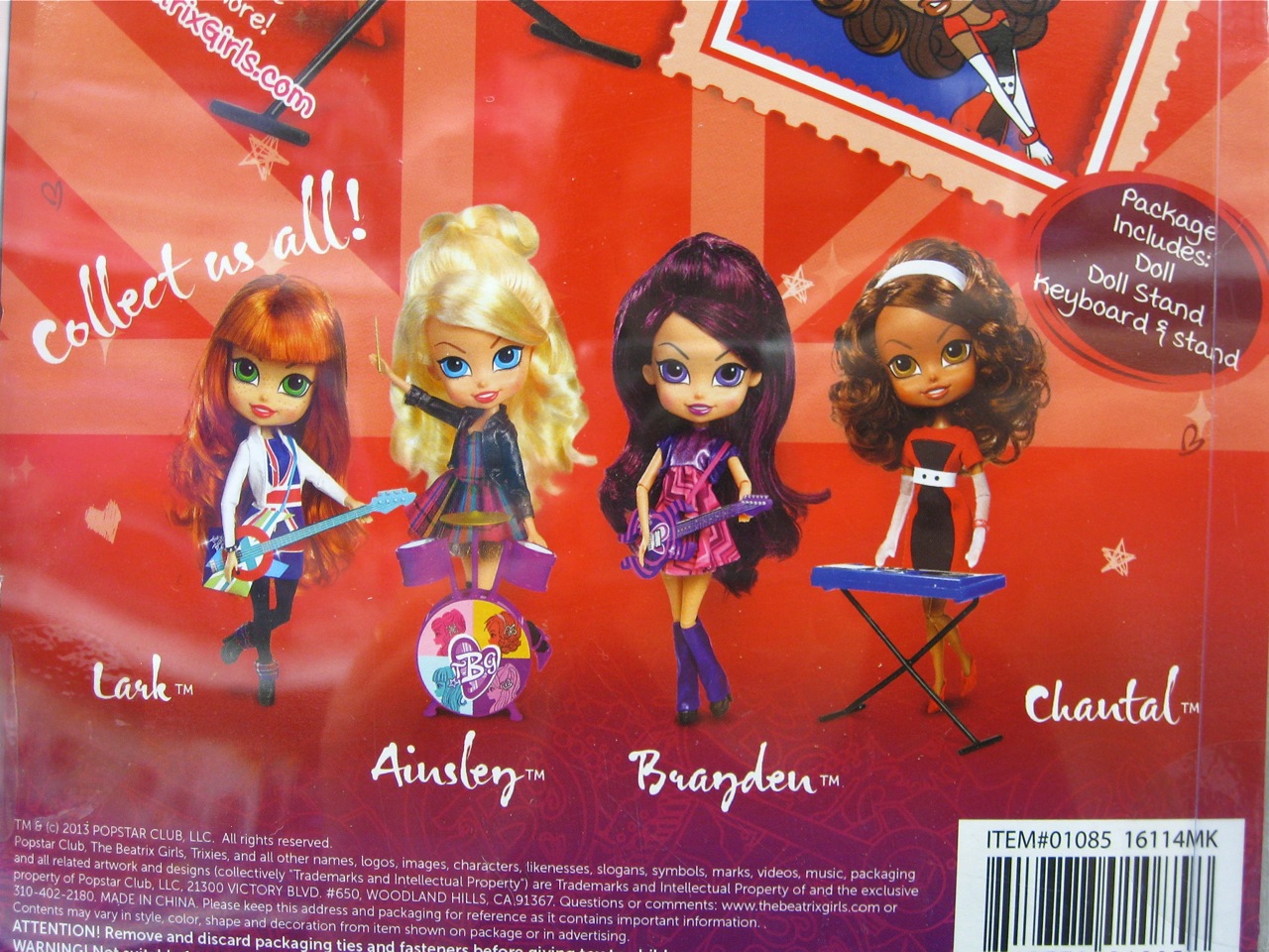 Las muñecas The Beatrix Girls, se crearon en 2012 y aparecieron en el mercado en el año 2013 de la mano de la empresa estadounidense Popstar Club, Inc. Estas muñecas se han comercializado en USA aunque desconozco si han llegado a otros países (es posible que a Canadá).