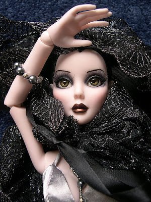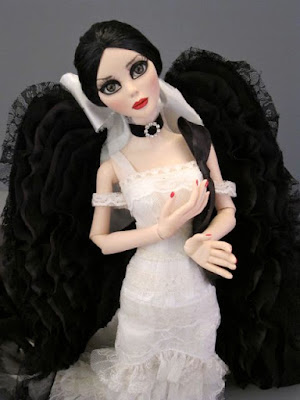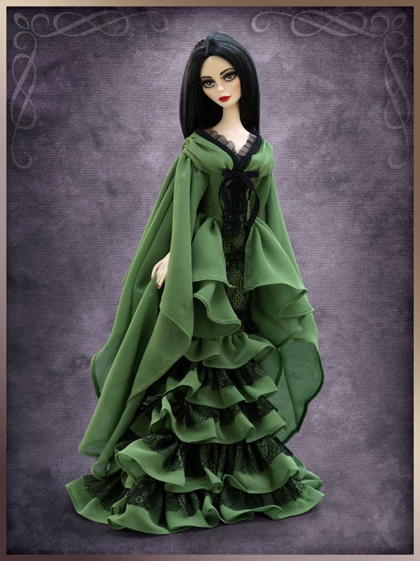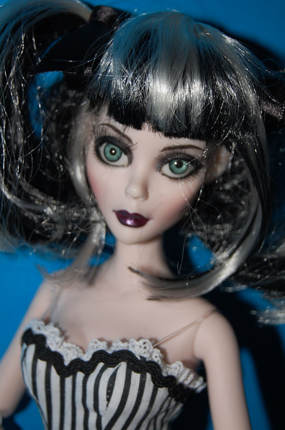 La muñeca Evangeline Ghastly, apareció en el año 2007 de la mano de la empresa Wilde Imagination (una afiliada a Tonner por decirlo de alguna manera). Se trata de una muñeca híbrida entre Fashion Doll y Ball Jointed Doll (BJD), ya que tiene el cuerpo articulado por bolas. Mide 43 centímetros y 14 puntos de articulación, perfecta para posar en fotos. También tiene los ojos de cristal insertados y peluca.