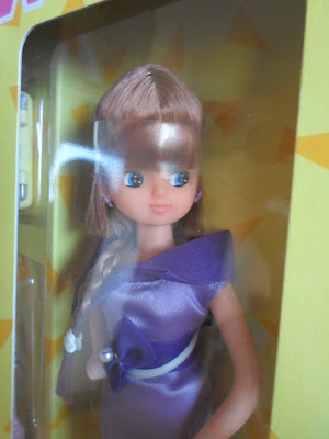 Tenemos el modelo con el vestido igual que el mío pero con el raso fucsia, y otro muy raro que no había visto antes que es más largo y todo rosa, excepto un "cinturón" lila con una flor en el centro, y unos guantes de manga del mismo color.