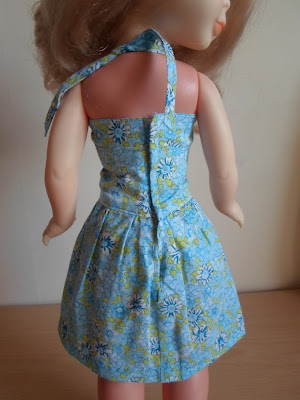 Es corto, llega hasta las rodillas y presenta tirantes, permitiendo que Nancy esté fresca. Además, el vestido está abierto por la espalda, lo cual me gusta muchísimo.