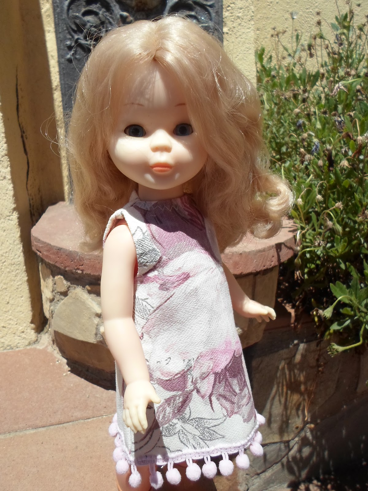 Es igual de largo que el otro y sus mangas son cortas y rectas, cubriendo únicamente los hombros. El cuello del vestido también es largo y recto, dejando gran parte del cuello de la muñeca cubierto.
